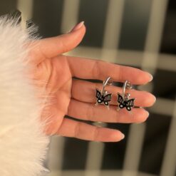 گوشواره طرح پروانه مشکی کد 1658