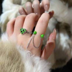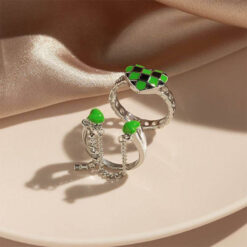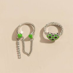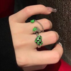انگشتر پینترستی شطرنجی و آویز نگین دار که به صورت تکی تکی هستند نه جفتی.