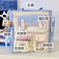 • دارای دو عدد جیب کوچک دکمه‌ای و زیپی در قسمت جلوی کیف