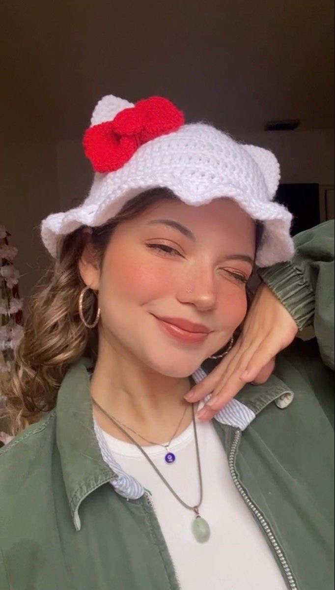 کلاه بافت باکت گربه ای طرح کیتی کد 1898