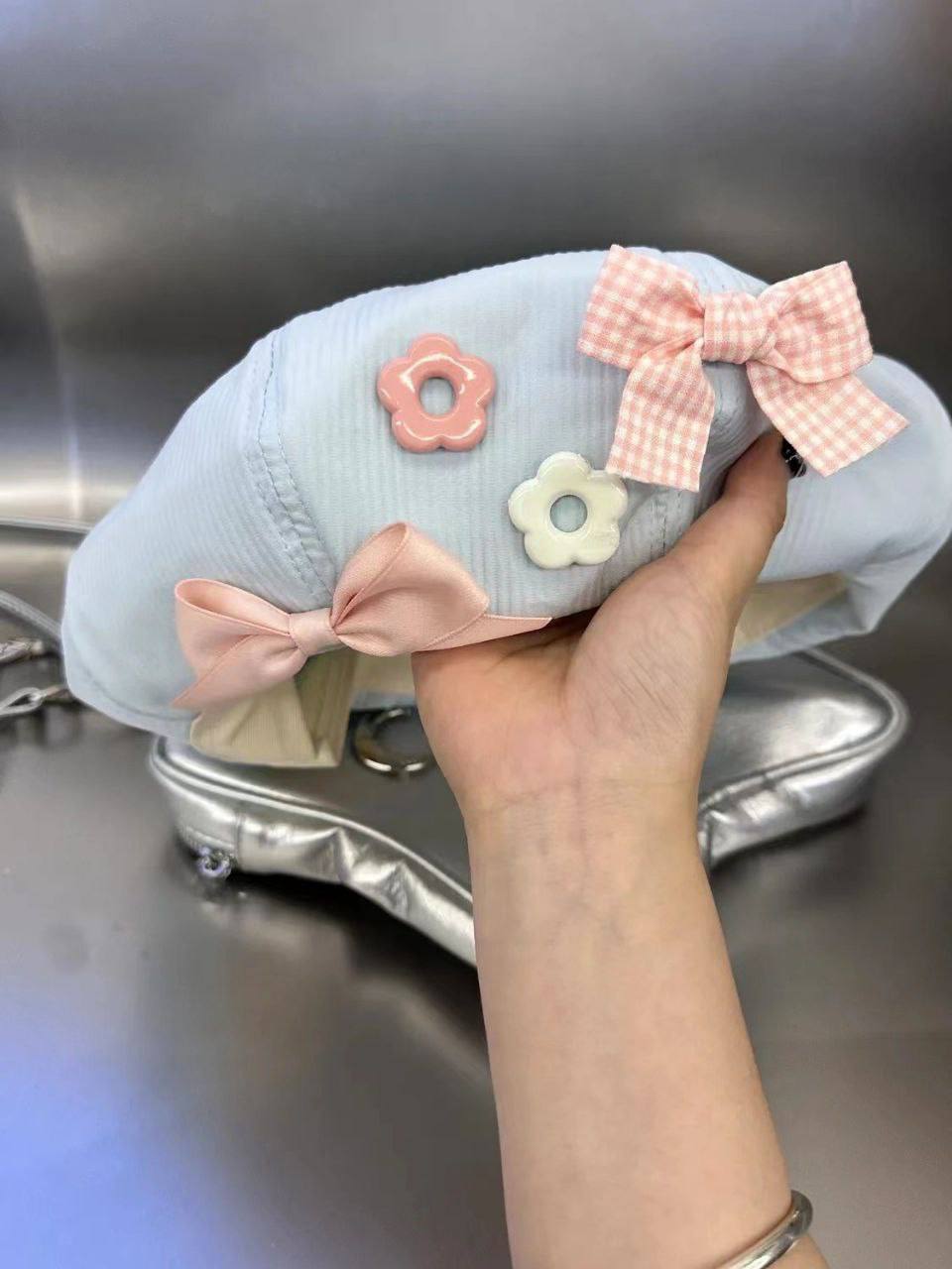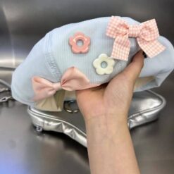 • دارای دو عدد پاپیون و دو عدد گل صورتی و سفید روی کلاه