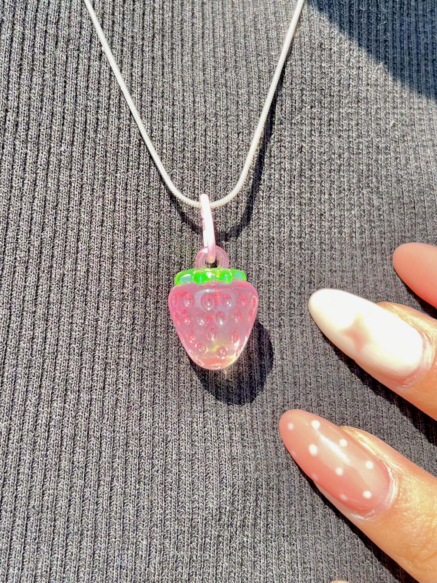 گردنبند توت فرنگی صورتی شفاف کد 2287