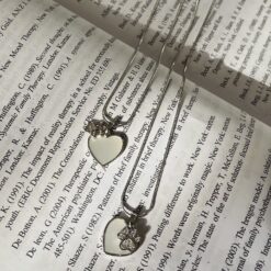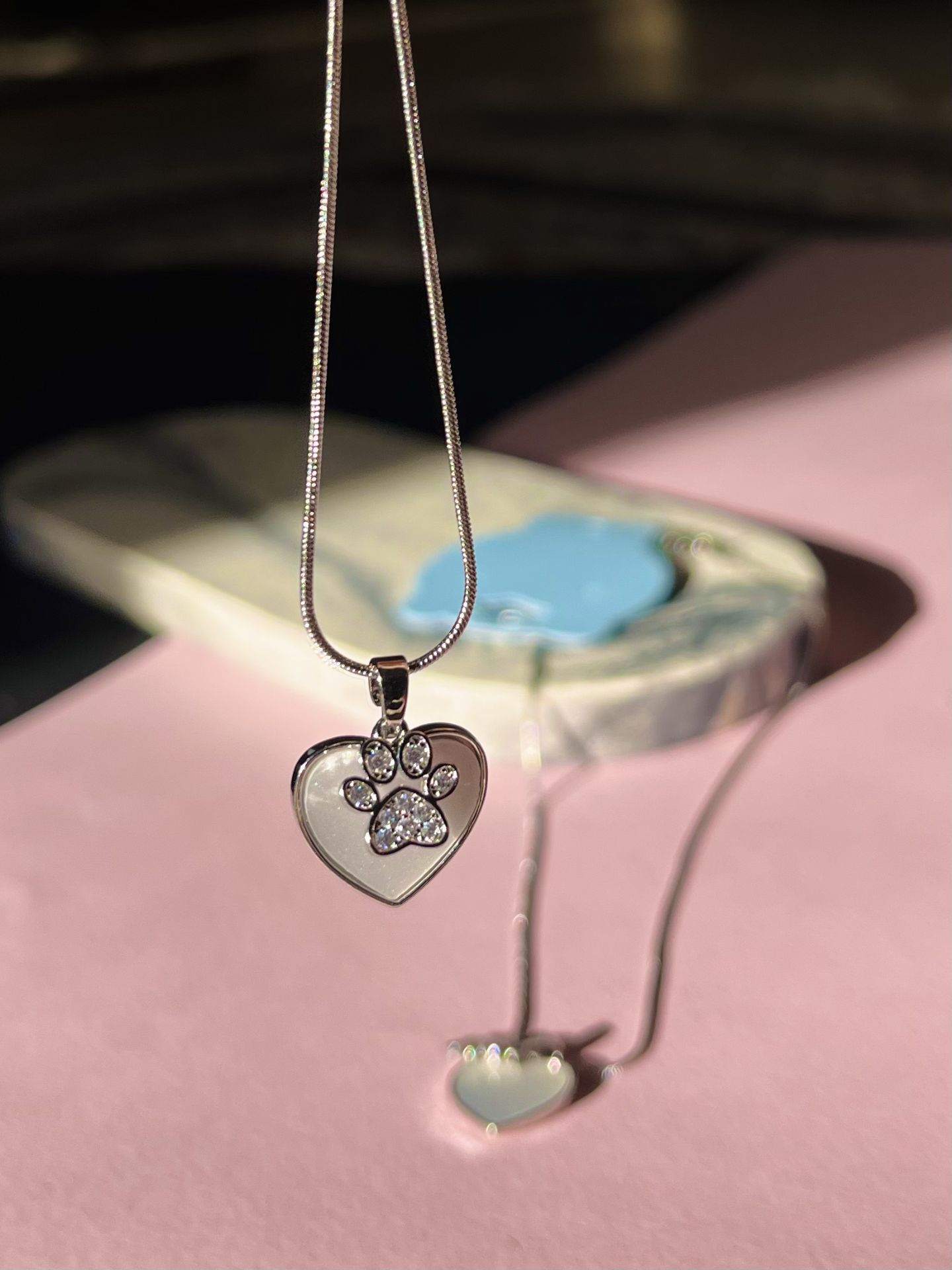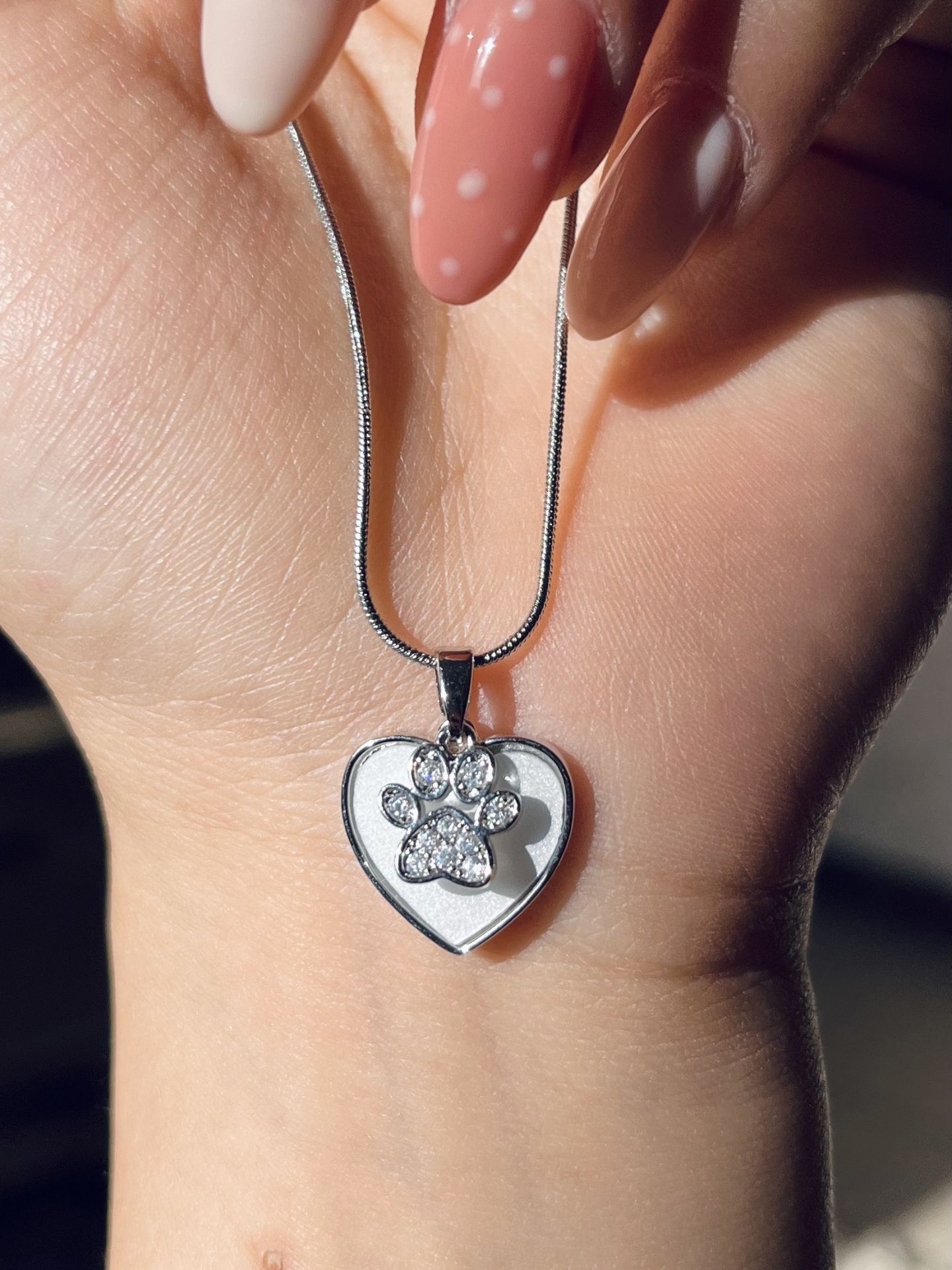 گردنبند قلب سفید شاینی و پنجه نگینی کد 2274