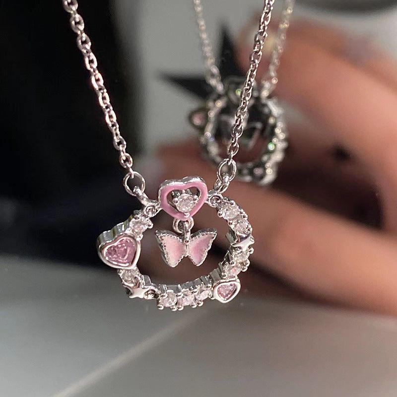 گردنبند پروانه صورتی کد 592