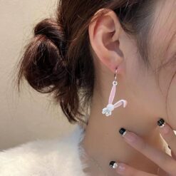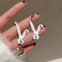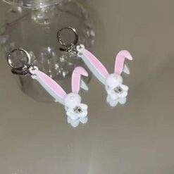 گوشواره خرگوش با گوشای صورتی نگین به بغل